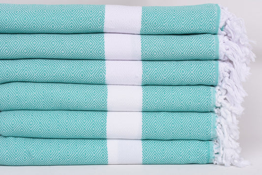 Benetton Green White Diamonds Bath Towel Organic Turkish Towel - 70" X 40"