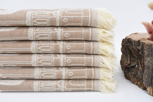 Beige Hand Tea Towel Organic Turkish Cotton Scene Patterned Tea Towel - 75 CM X 50 CM