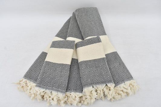 Black Bath & Hand Diamonds Towel Organic Turkish Cotton - 70" X 40" - 36" X 20"