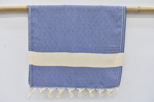 Blue Bath & Hand Diamonds Towel Organic Turkish Cotton - 70" X 40" - 36" X 20"