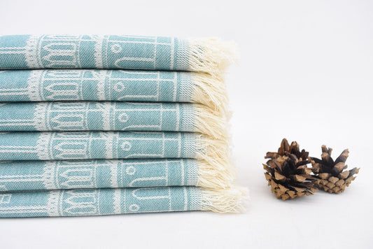 Mint Hand Tea Towel Organic Turkish Cotton Scene Patterned Tea Towel - 75 CM X 50 CM
