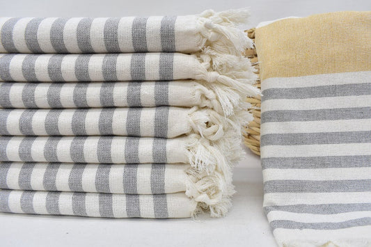Mustard Gray Face Towel Organic Peshkir Turkish Towel - 90 CM X 45 CM