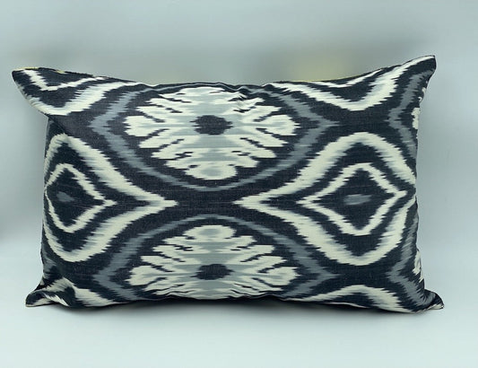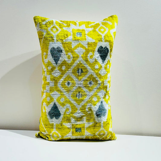 Velvet Double IKAT Silk Back Cushion 60x40 CM - Yellow Gray