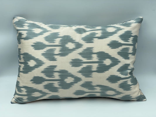 Velvet Double IKAT Silk Back Cushion 60x40 CM - Sage Blue Floral