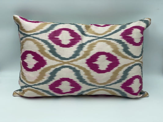Velvet Double IKAT Silk Back Cushion 60x40 CM - Urchin Pink