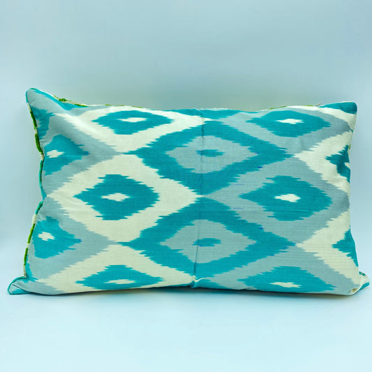 Velvet Double IKAT Silk Back Cushion 60x40 CM - Turquoise Square