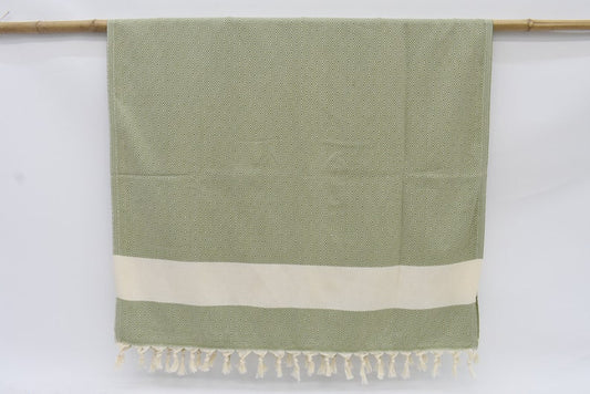 Dark Green Bath & Hand Diamonds Towel Organic Turkish Cotton - 70" X 40" - 36" X 20"