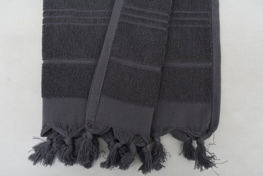 Handmade Gray Stonewash Terry Hand Face Towel Organic Turkish Towel - 100 CM X 50 CM