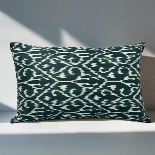 IKAT Silk Back Cushion Cover 60X40 CM - Black Cream