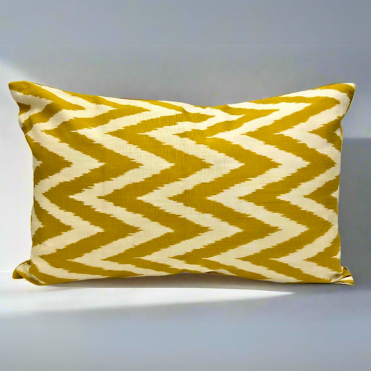 IKAT Silk Back Cushion 60x40 CM - Zig Zag Yellow