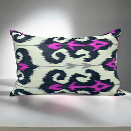 IKAT Silk Back Pillow Cover 60x40 CM - Pink Wine