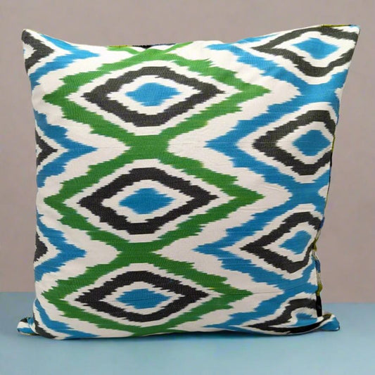 IKAT Silk Back Cushion Cover 50x50CM- Blue Green Seeds