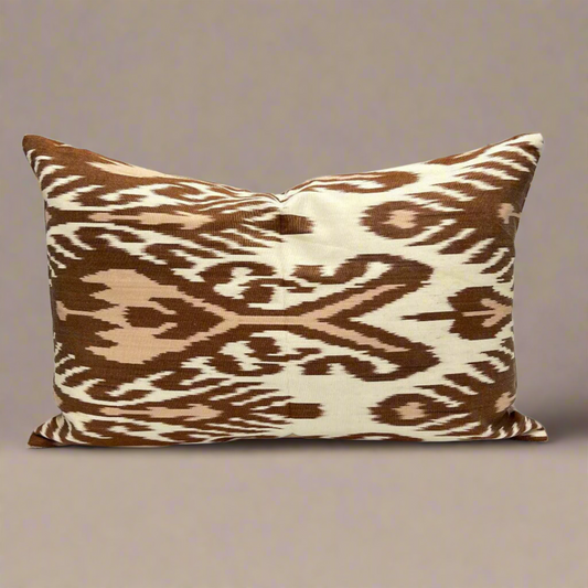 Velvet Double IKAT Silk Back Cushion 60x40 CM - Honey Amber