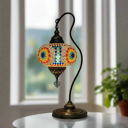 Swan Base Mosaic Turkish Lamp - Medium Glass