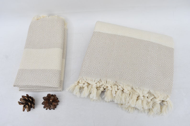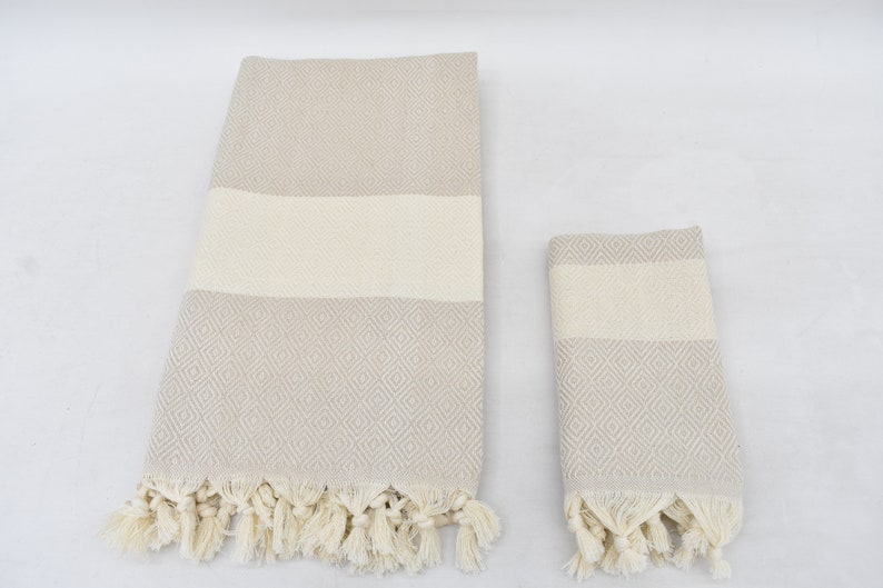 Beige Diamonds Bath Towel Organic Turkish Cotton - 70" X 40" 36" X 20"
