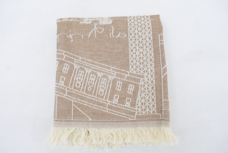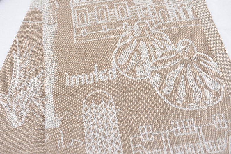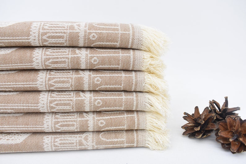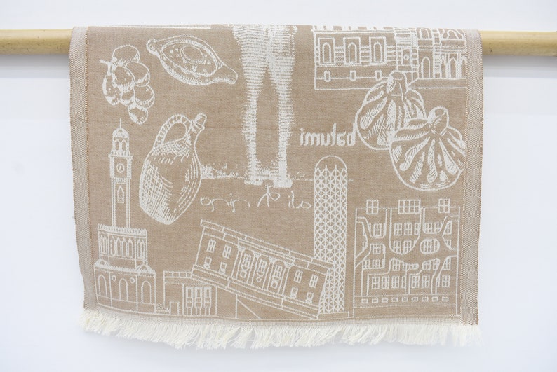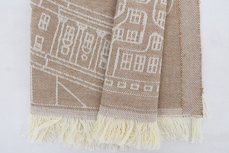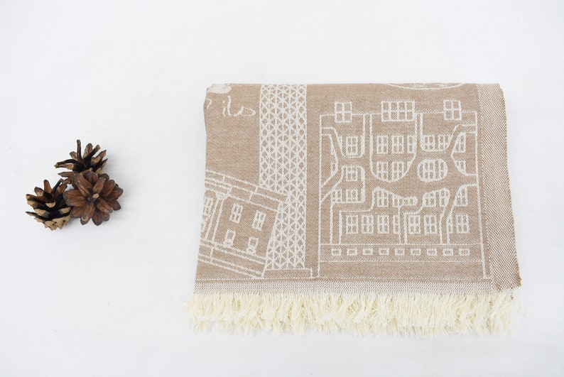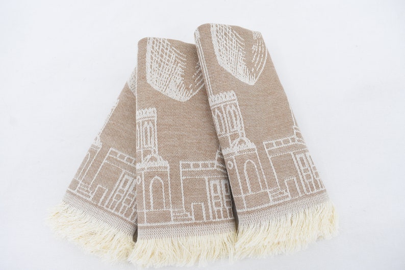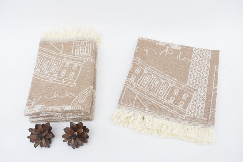 Beige Hand Tea Towel Organic Turkish Cotton Scene Patterned Tea Towel - 75 CM X 50 CM