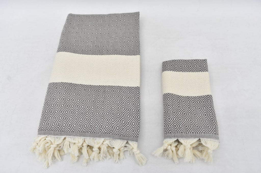Brown Diamonds Bath Towel Organic Turkish Cotton - 70" X 40"- 36" X 20"