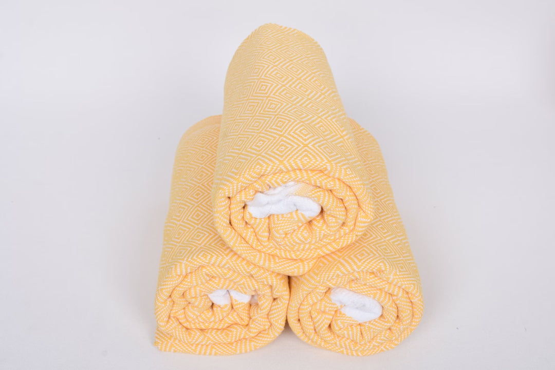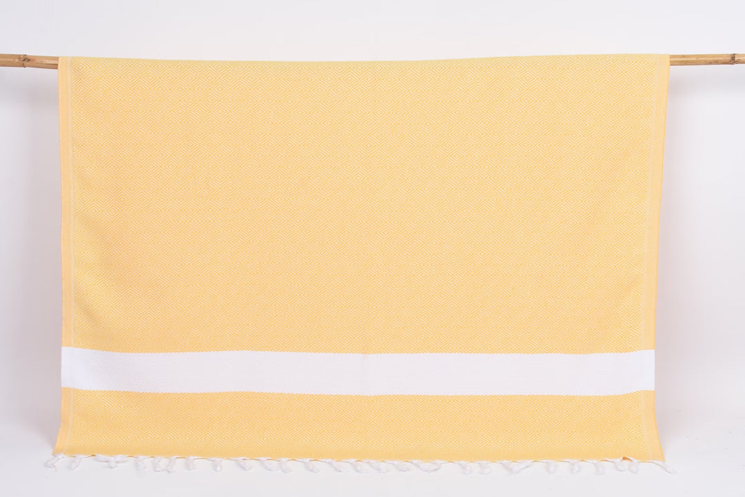 Dark Yellow White Diamonds Bath Towel Organic Turkish Towel - 70" X 40"