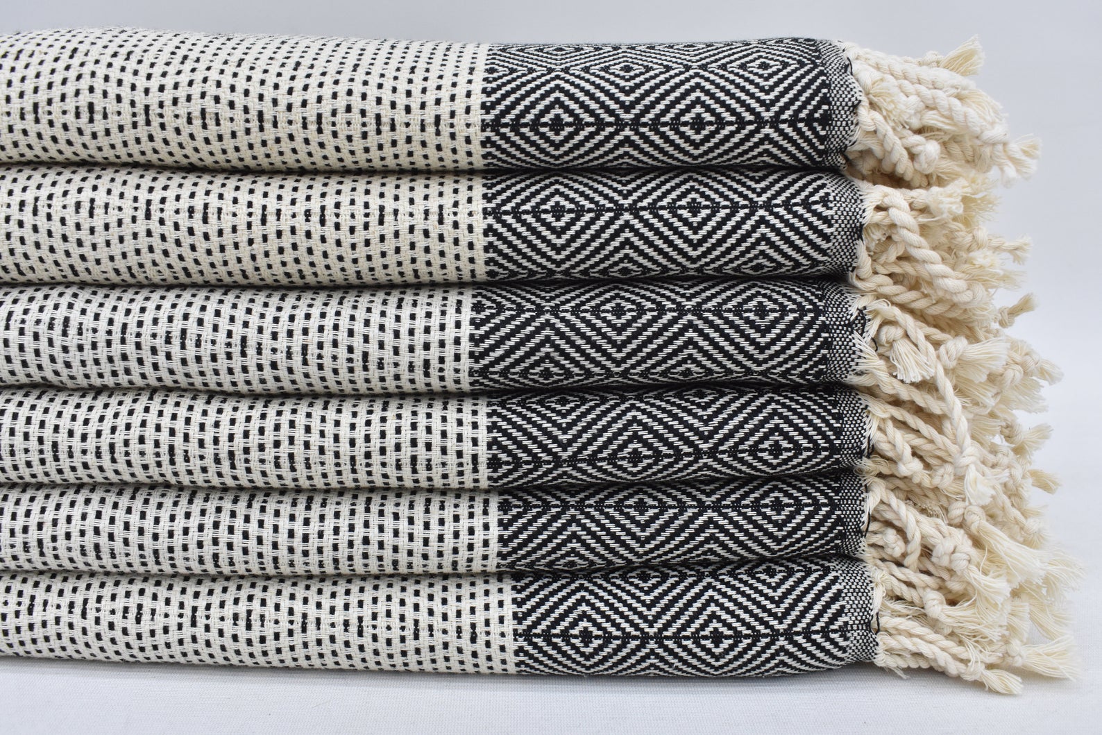 Face Towel Organic Turkish Towel Diamond Weave Black - 90cm x 50 CM