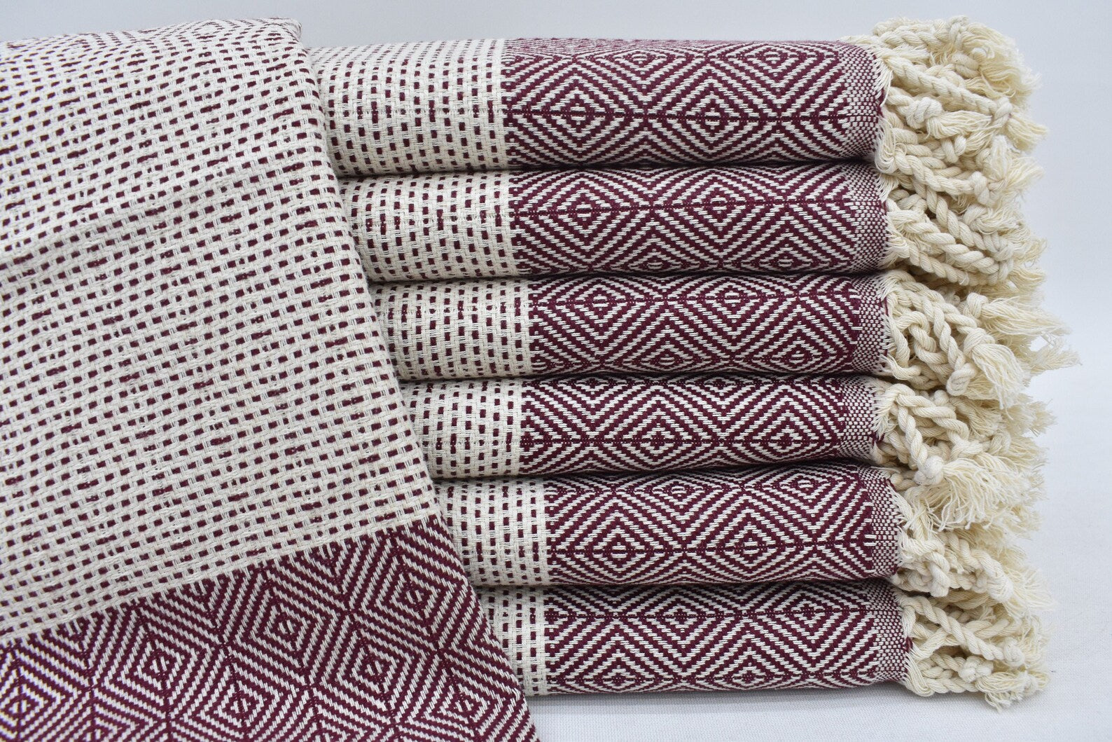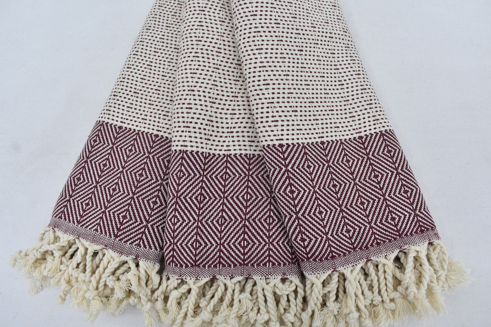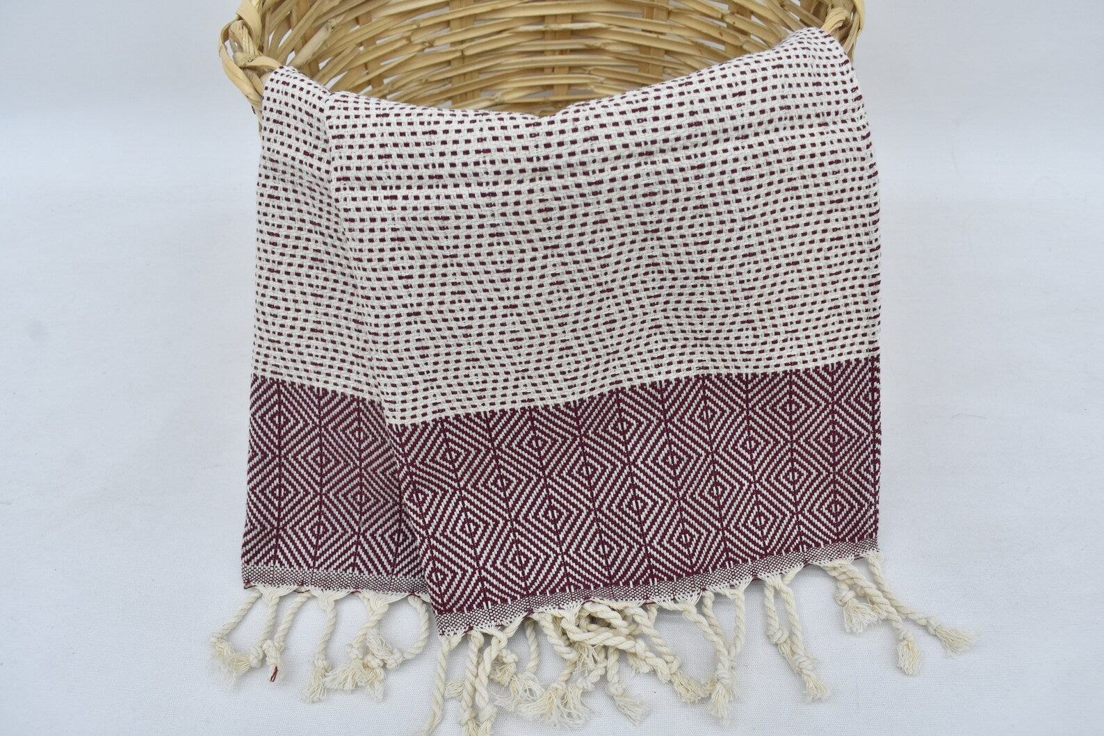 Face Towel Organic Turkish Towel Diamond Weave Maroon - 90cm x 50 CM
