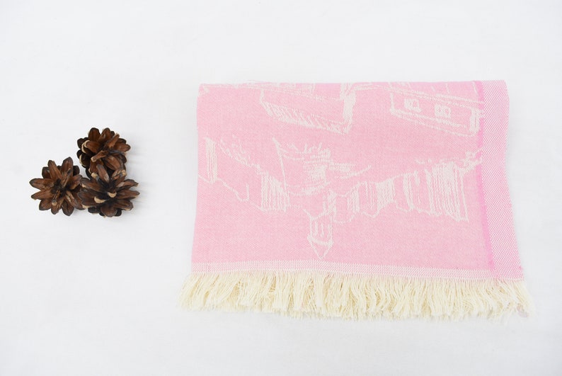 Pink Hand Tea Towel Organic Turkish Cotton Scene Patterned Tea Towel - 75 CM X 50 CM