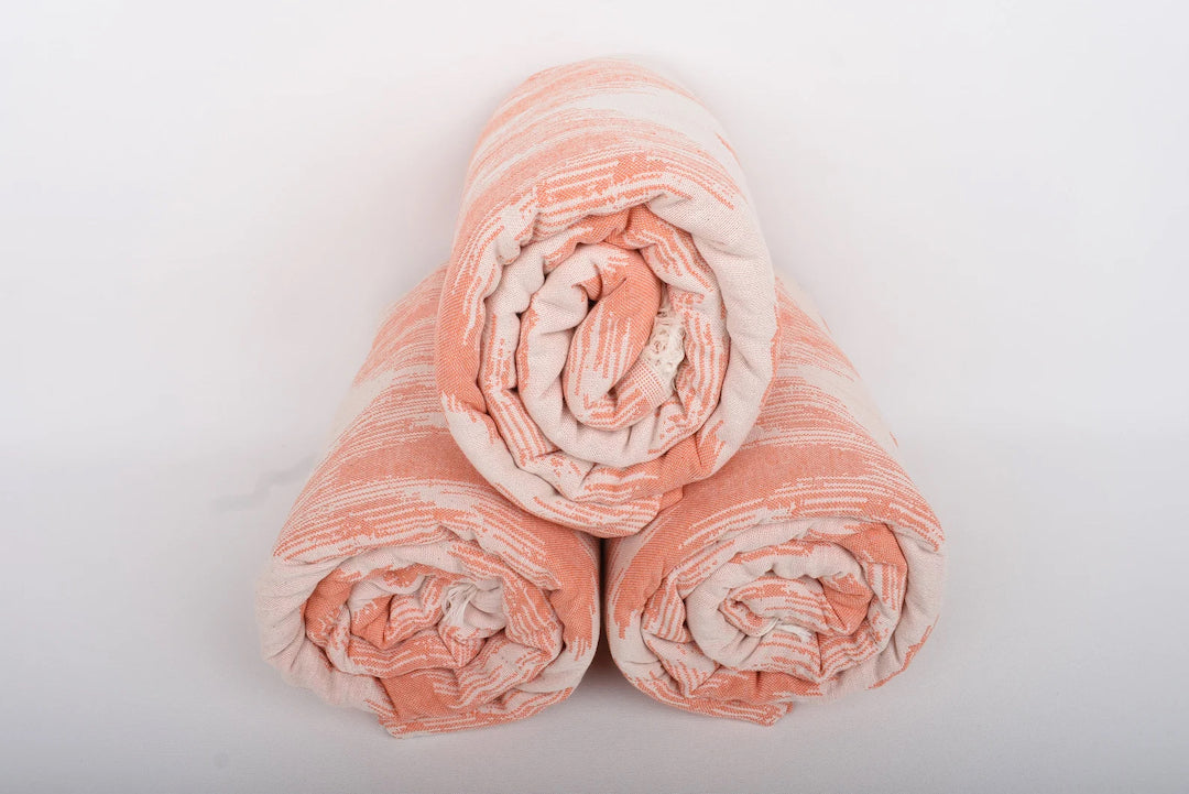 IKAT Blanket Organic Turkish Cotton Salmon- 89"x75"