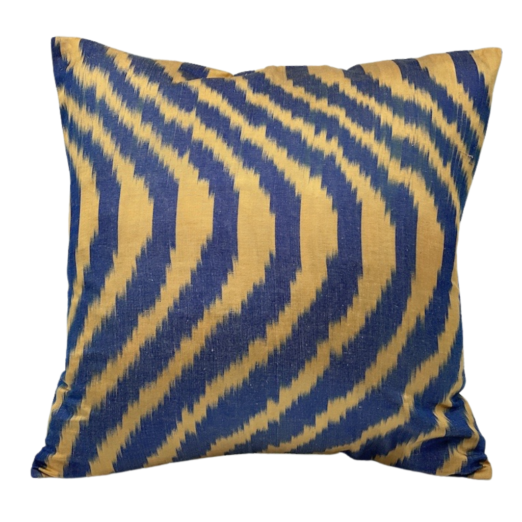 One Side IKAT Cotton Silk Mix Cushion Cover - Caramel Indigo Waves