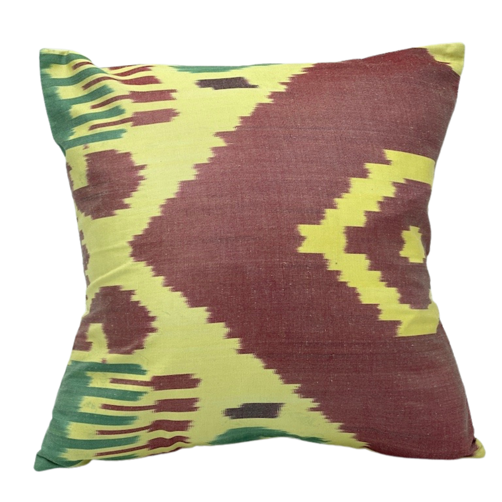 One Side IKAT Cotton Silk Mix Cushion Cover - Wine Lime Half Diamond