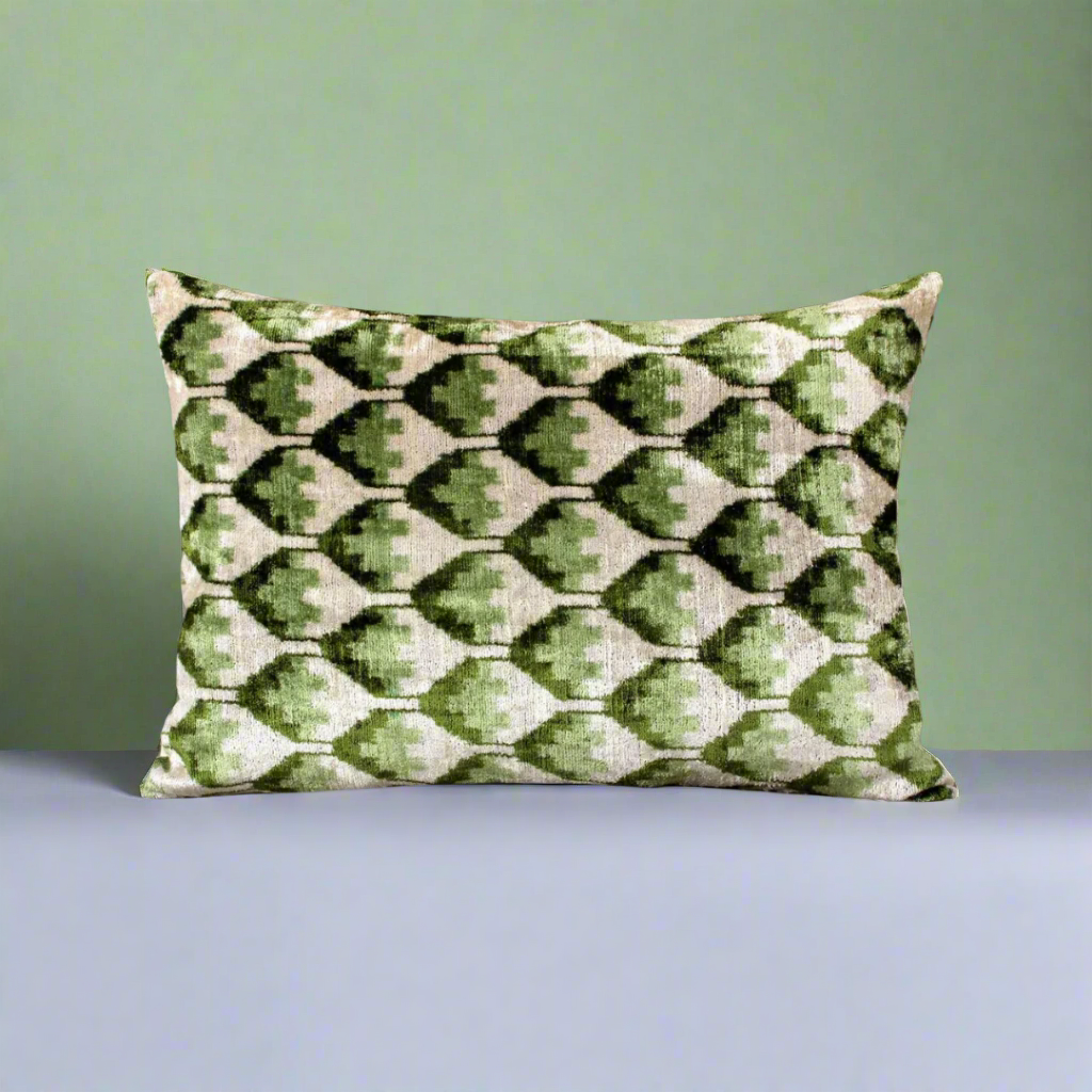 IKAT Cotton Back Cushion 60x40 CM - Green Leafs