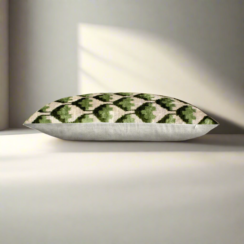 - Material: Front: 80% Silk Velvet IKAT, 20% Cotton | Back: 100% Cotton