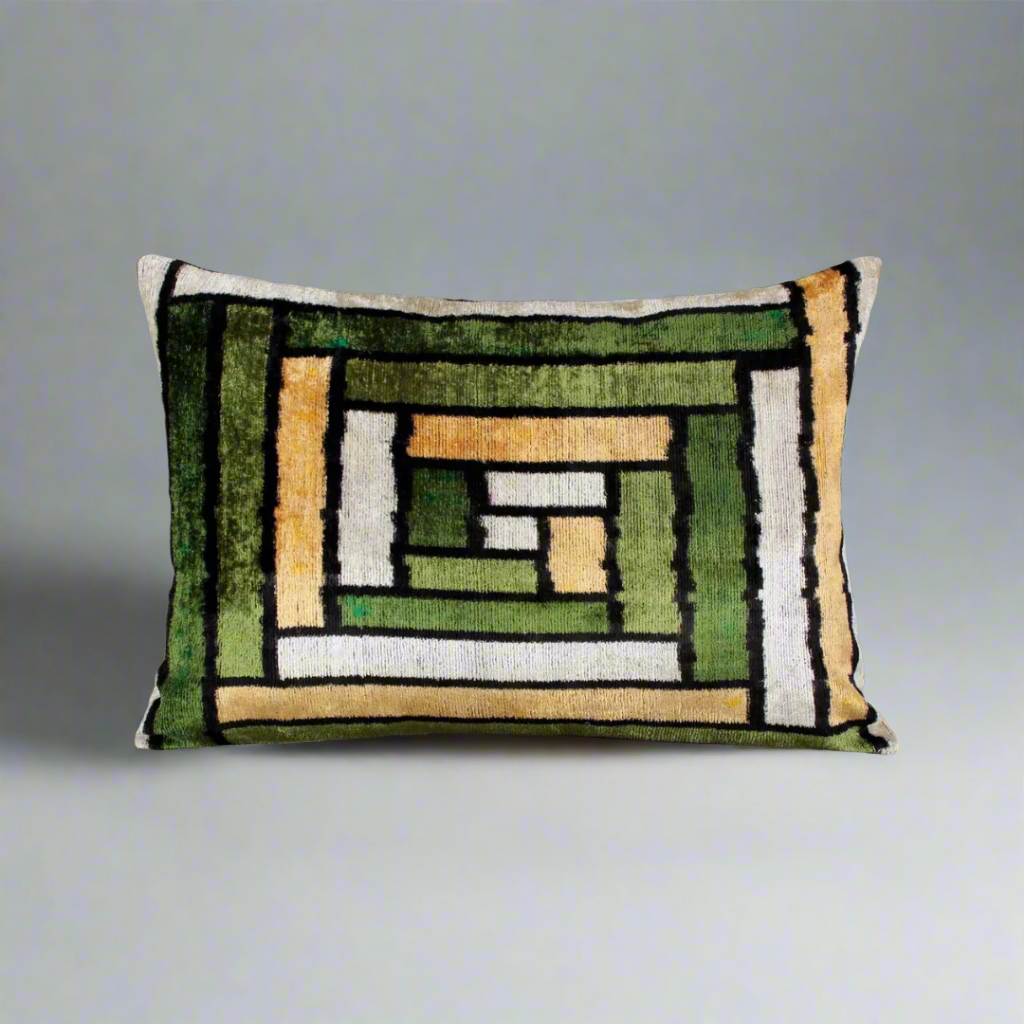 - Material: Front: 80% Silk Velvet IKAT, 20% Cotton | Back: 100% Cotton