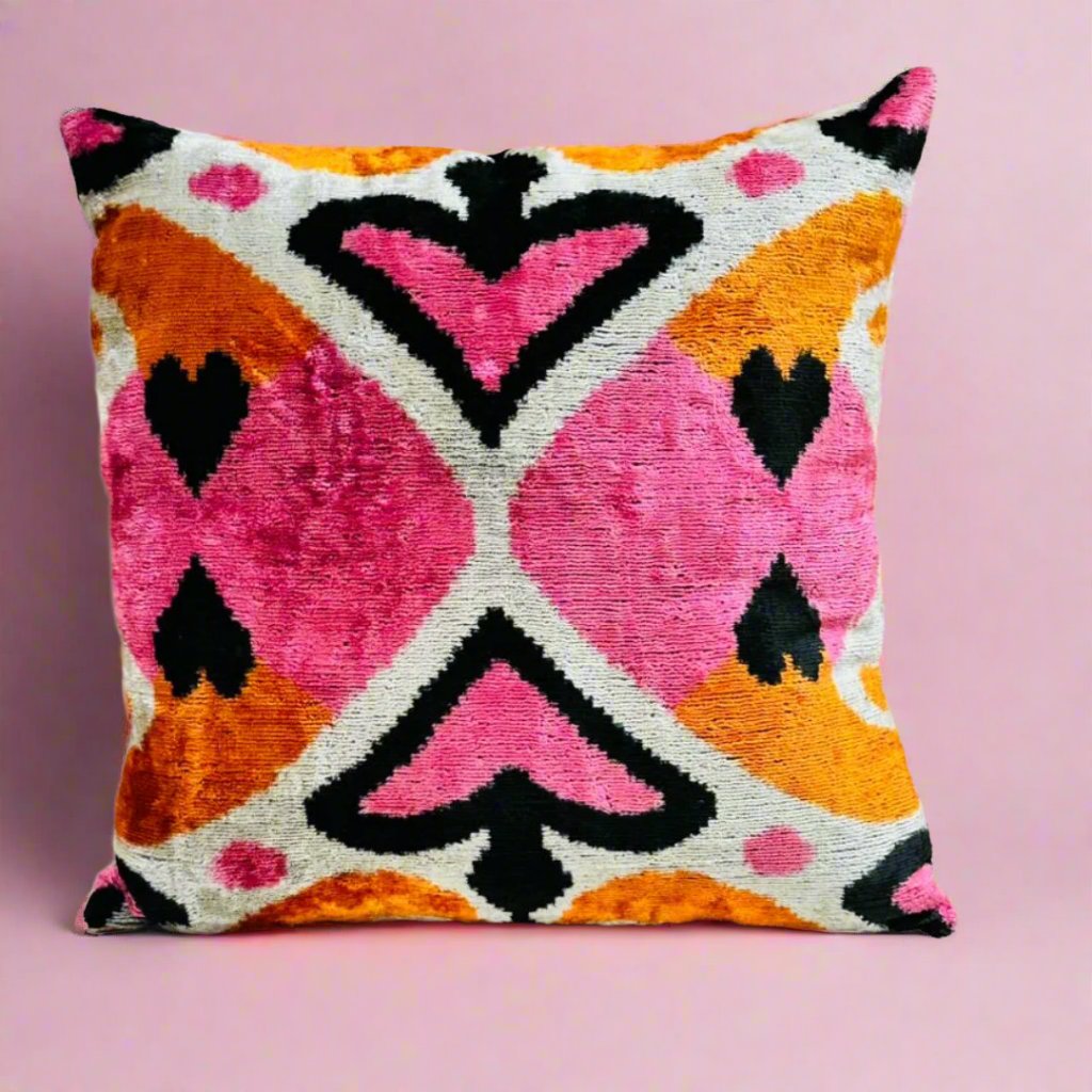 IKAT Cotton Back 40x40 CM Cushion Cover - Pink Orange Hearts