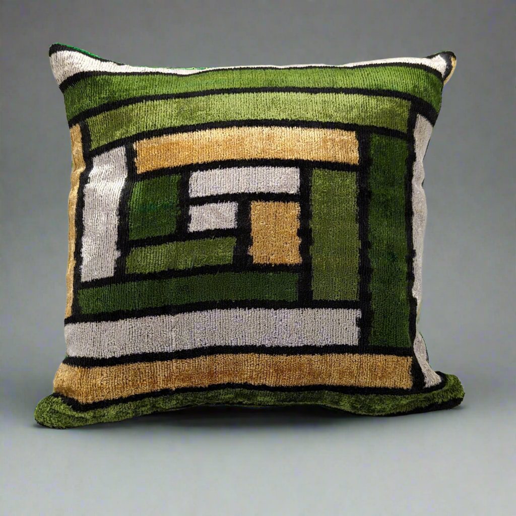 IKAT Silk Back Cushion Cover 40x40 CM - Green Square Dimension