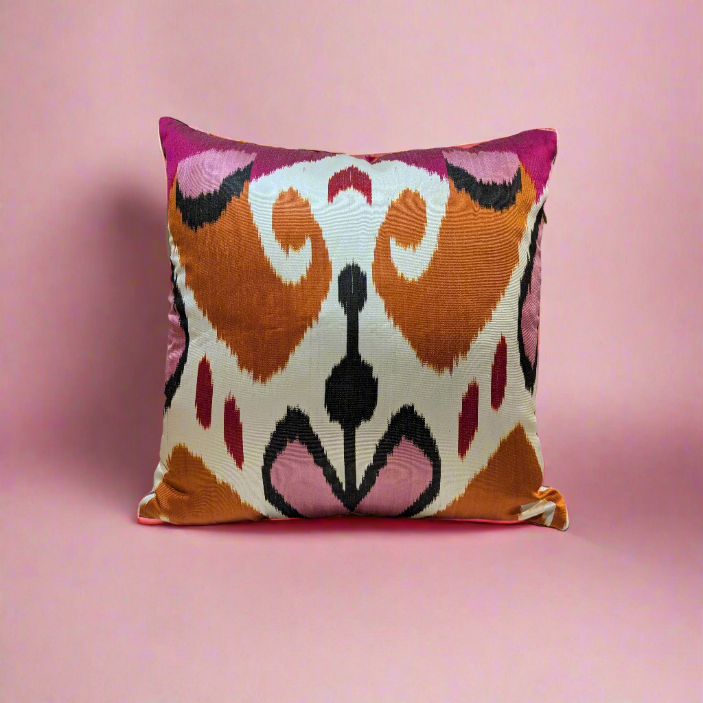 IKAT Silk Back Pillow Cover 40x40 CM - Pink Orange Hearts