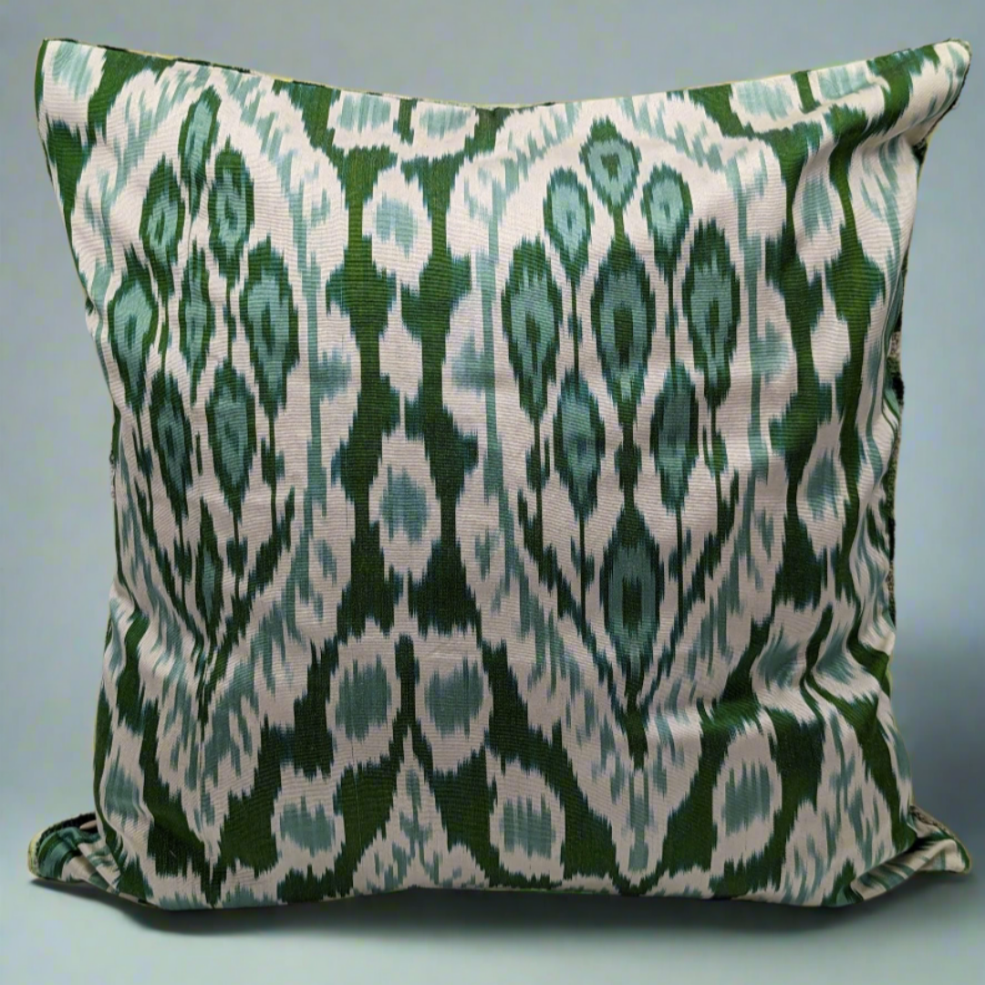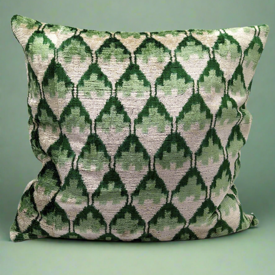 Velvet Silk Square Cushion Big 50x50CM IKAT Silk Back - Green Leafs