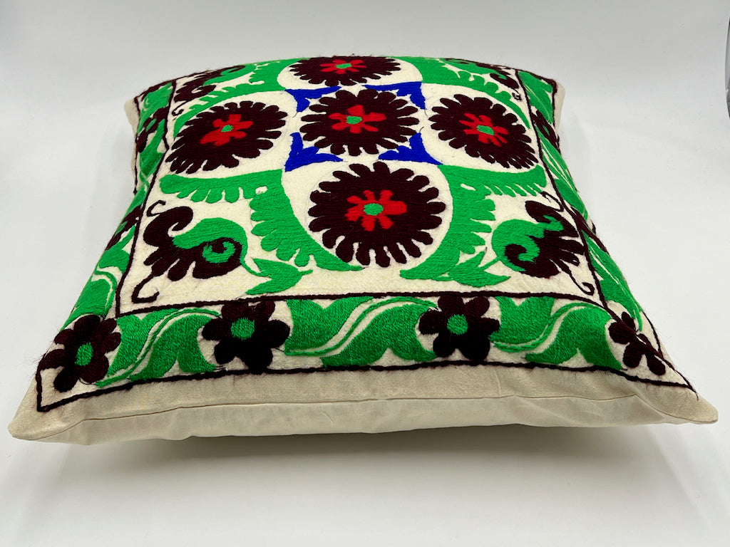 Suzani Cotton Pillow 50x50 CM 20"x20" - Vivid Green