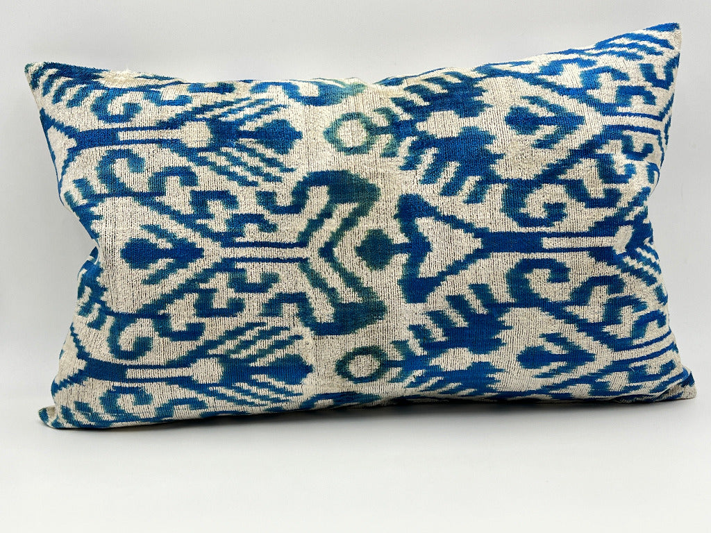 Velvet Double IKAT Silk Back Cushion (60*40) CM - Tribal Blue