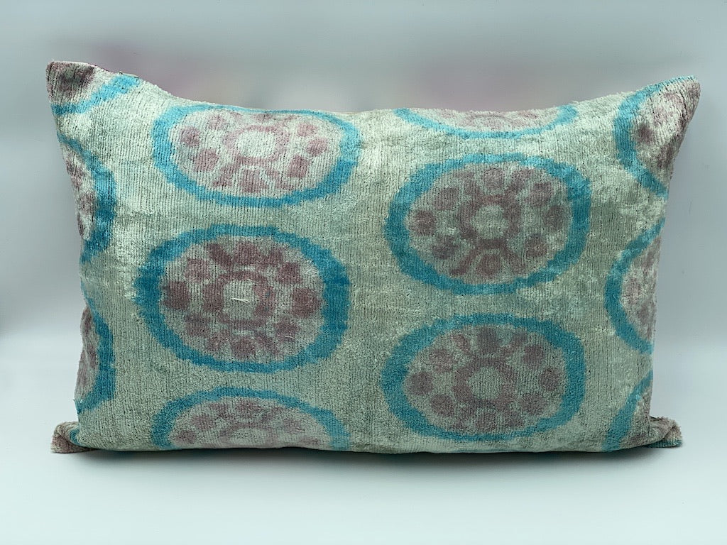 These exquisite covers are made of Silk Velvet IKAT are hand-dyed silk loom and hand-stitched in Turkey.