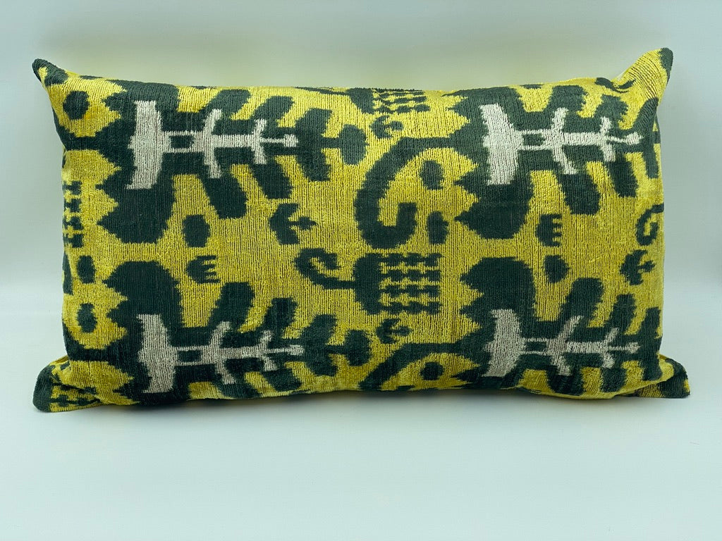 Velvet Double IKAT Silk Back Cushion 60x40 CM - Mustard Black