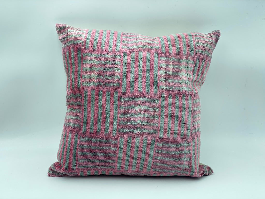 Velvet Silk IKAT Cotton Back 40x40 CM Cushion Cover -Pink Gray